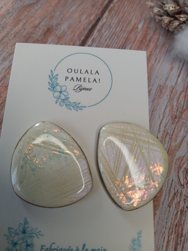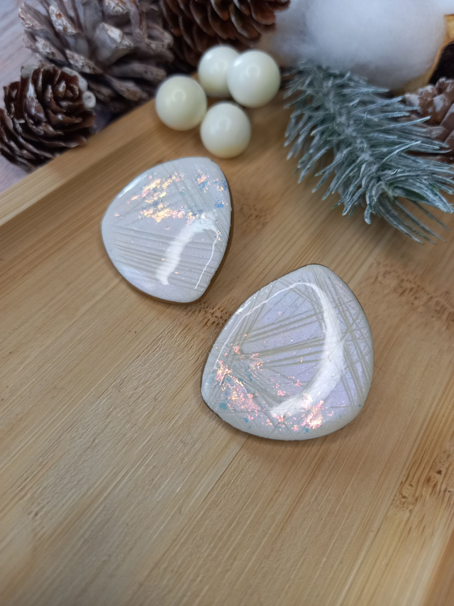 Ces boucles d'oreilles irisées et scintillantes me font penser aux fleurs de givre sur les fenêtres. Elles capteront la lumière au gré de tes mouvements.