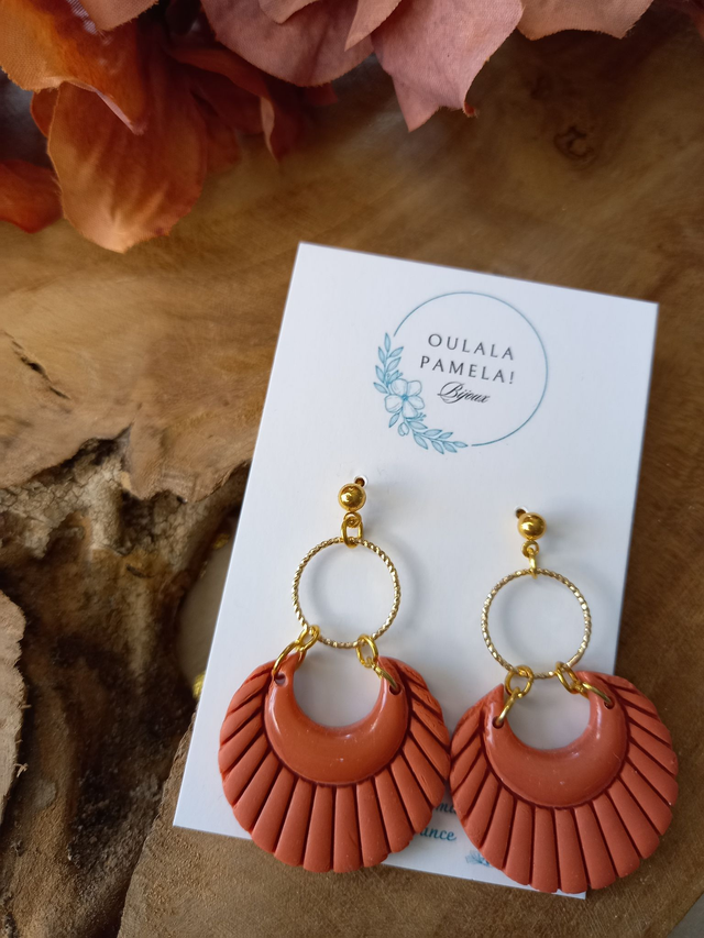 Les couleurs et formes originales de ces pendantes rondes me rappellent les terres africaines. Elles réchauffent les cœurs lorsqu’on les découvre, sous le col de ton grand manteau d’hiver !