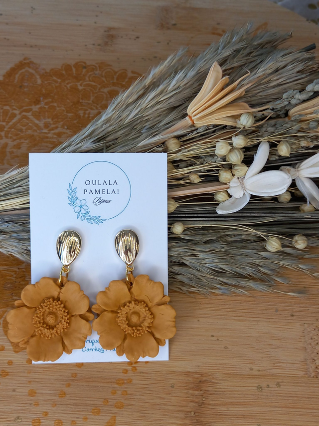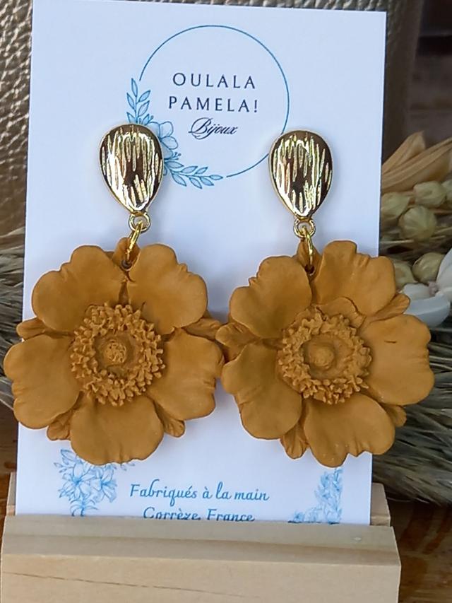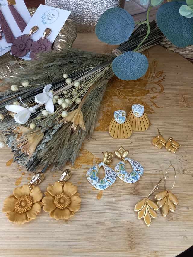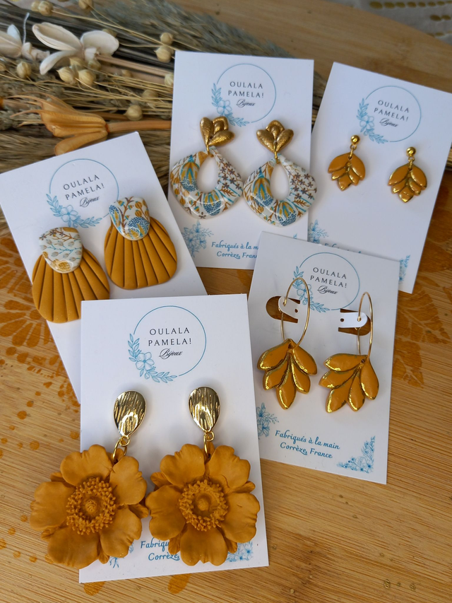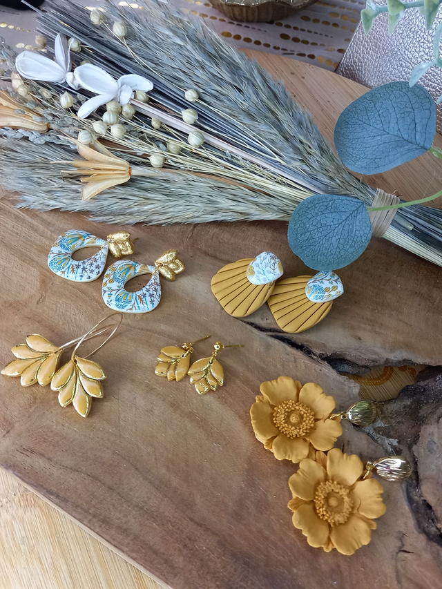 Argile polymère matte. Apprêts dorés en acier inoxydable hypoallergénique. Fabriqué à la main en France au cœur de la Corrèze.