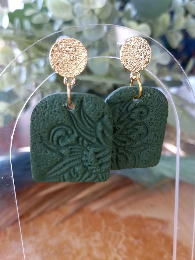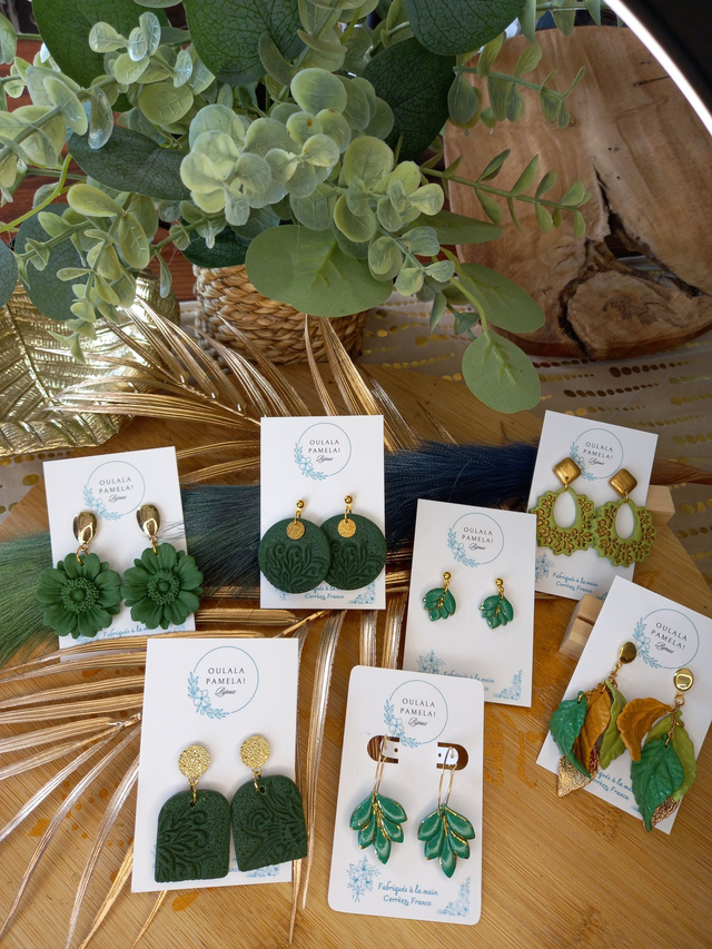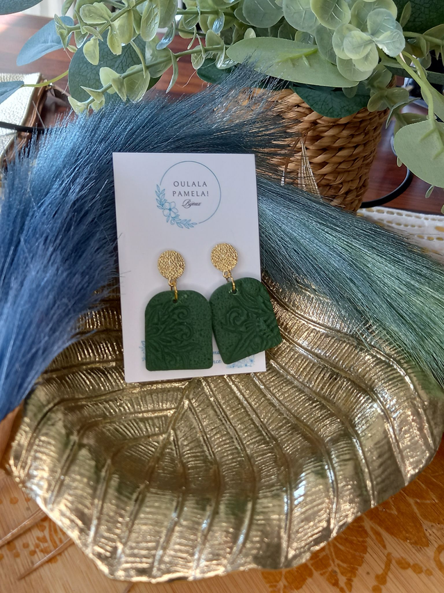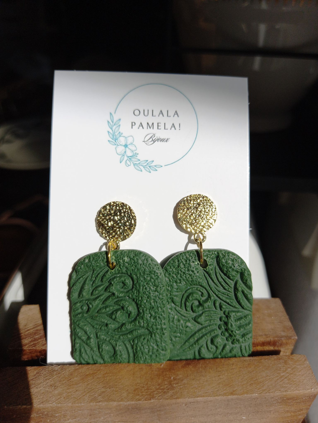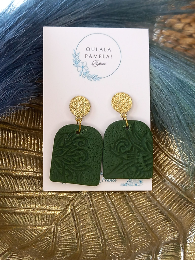 Argile polymère texturée et matte. Apprêts dorés en acier inoxydable hypoallergénique. Fabriqué à la main en France au cœur de la Corrèze.