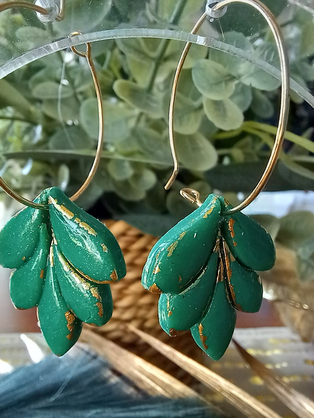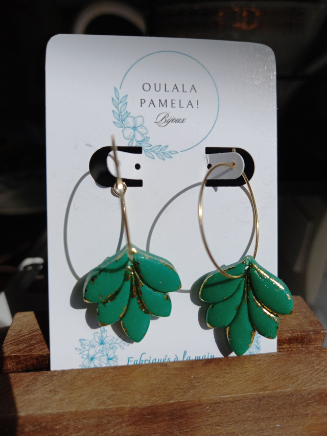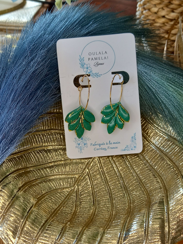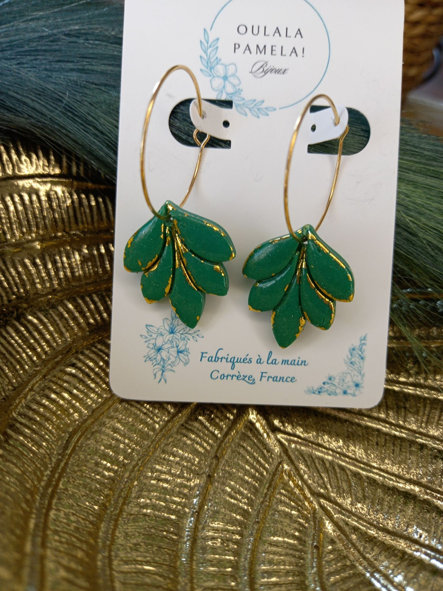 Argile polymère et feuilles d'or, vernies . Apprêt créole dorée en acier inoxydable hypoallergénique. Fabriqué à la main en France au cœur de la Corrèze.