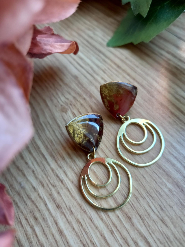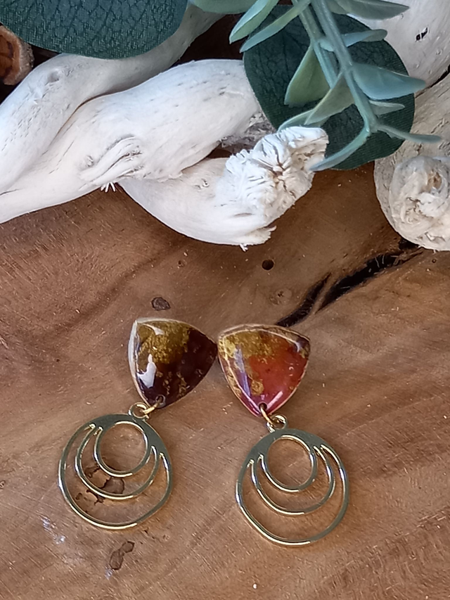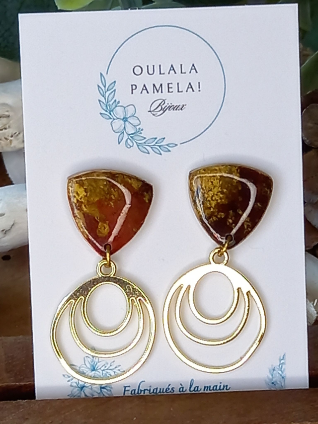 Boucles d'oreilles faites main en argile polymère et encres, résinées pour plus de brillance