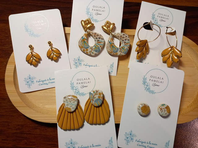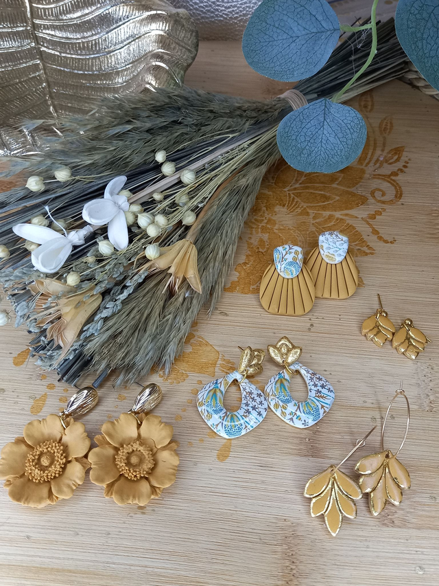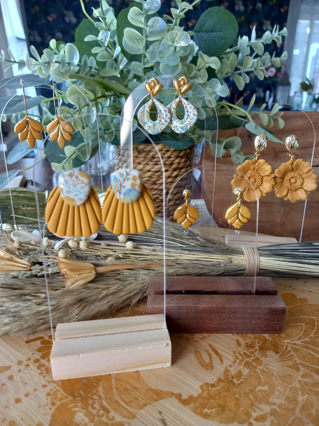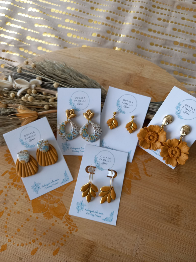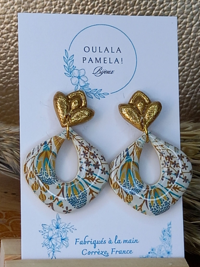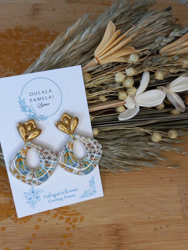 Argile polymère résinée. Apprêts en acier inoxydable hypoallergénique. Fabriqué à la main en France au cœur de la Corrèze.