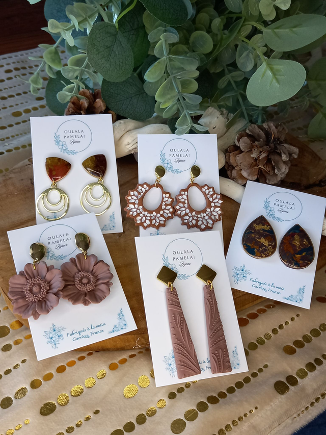 Argile polymère. Apprêts en acier inoxydable hypoallergénique. Fabriqué à la main en France au cœur de la Corrèze.
